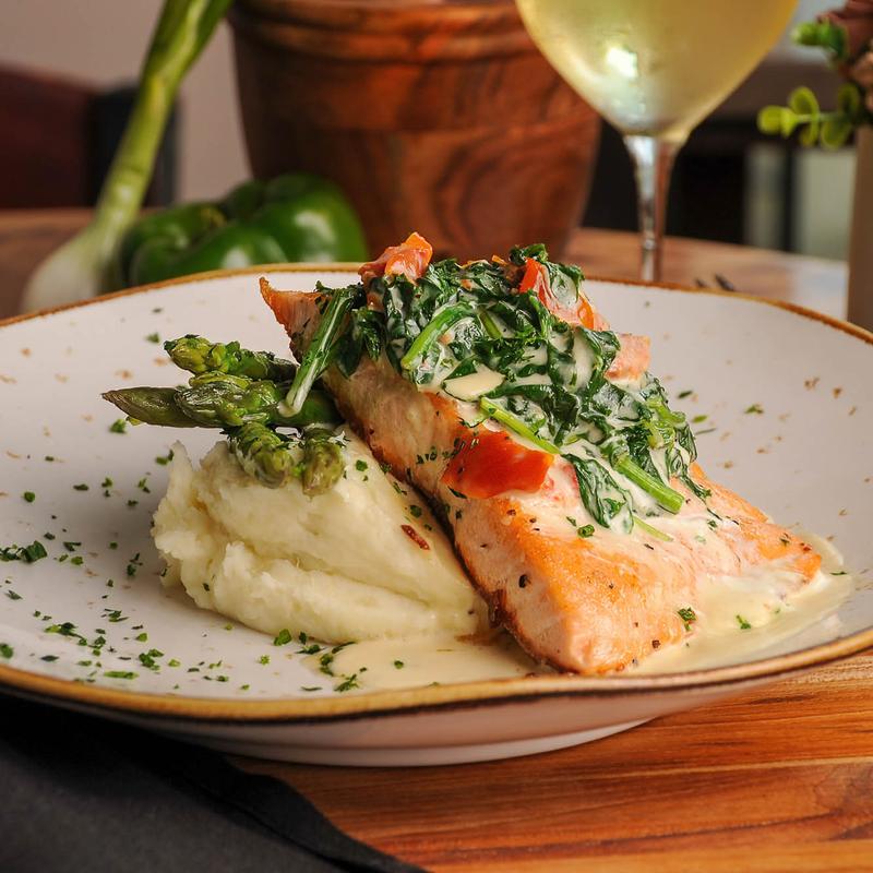 My favorite restaurant wine shop! Excellent food! Excellent staff! Friendly and welcoming. Chipotle shrimp appetizer is awesome! The salmon perfectly cooked, Goat cheese & apple salad perfect! Wine selection outstanding! We come here at least 2 times a week. We are spoiled by the quality of the food, and the sweet caring staff!